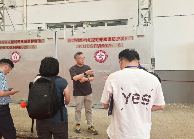 公司总经理陈为民率公司技术、工程、销售等部门负责人和技术骨干参加现场观摩活动,并在现场围绕RF32001-2025《人民防空防护设备(防护门类)通用技术标准》技术要点与来自全国的同行作现场交流并释疑。